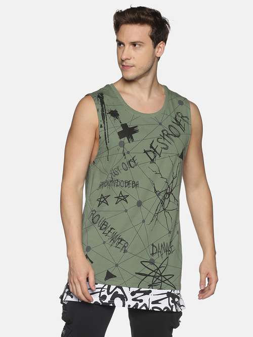 olive green printed vest