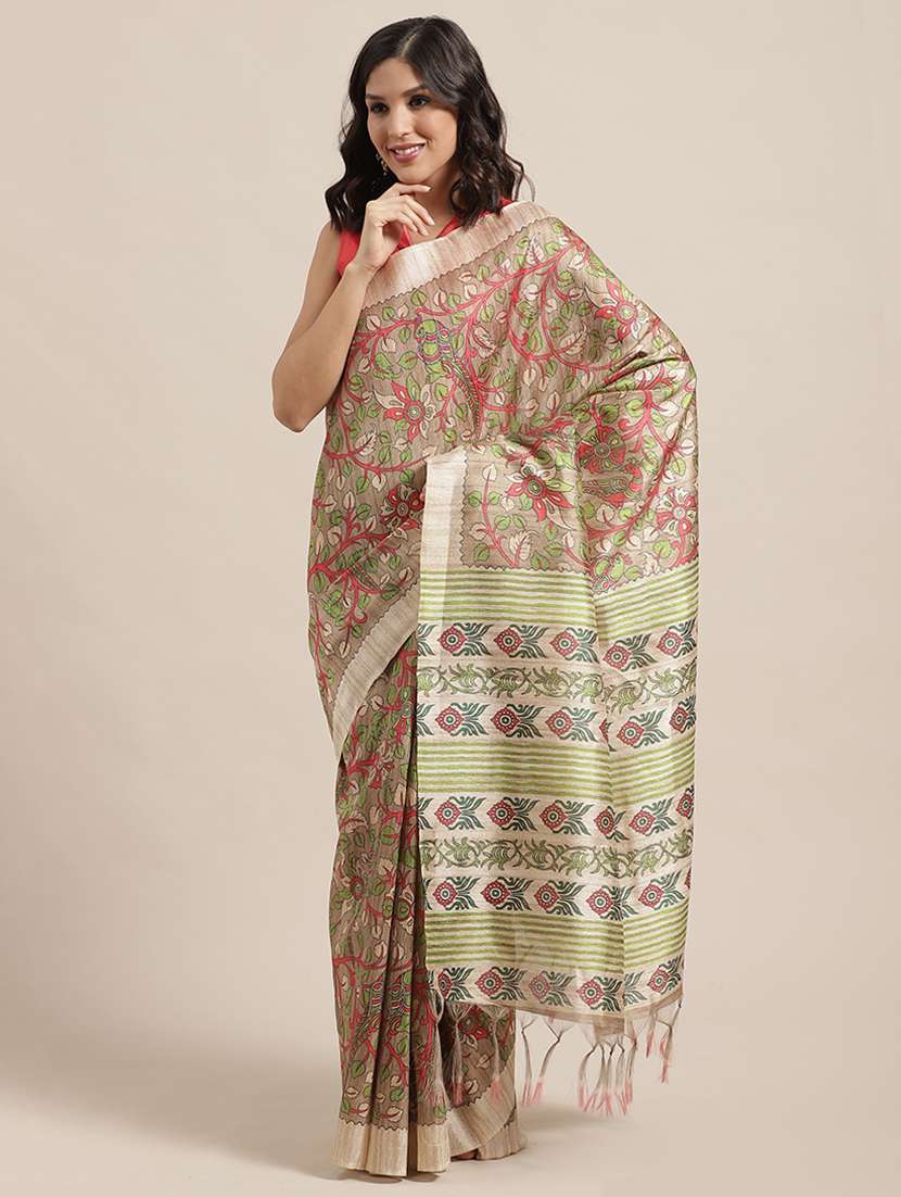 floral printed saree with blouse - 17195147 - Very Small Image - 1