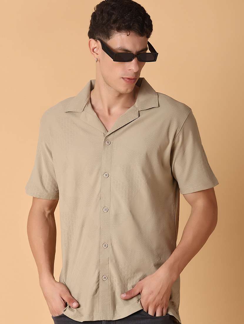 - » men self design short sleeve regular fit casual shirt
