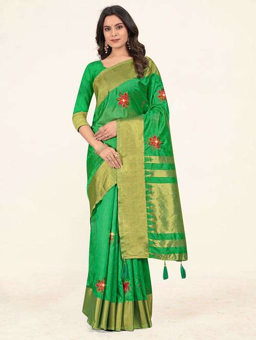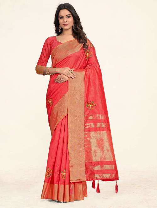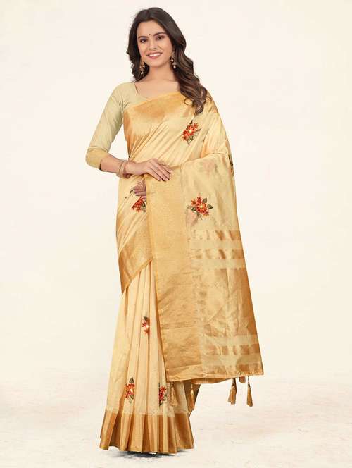 Chit pallu saree having woven zari motifs with minakari border, stones and latkan