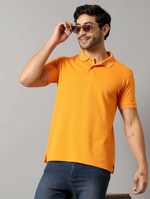 - » men orange printed short sleeve polo t-shirt