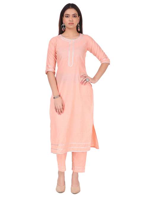 orange cotton blend kurta pant  set - 18217474 - Very Small Image - 1