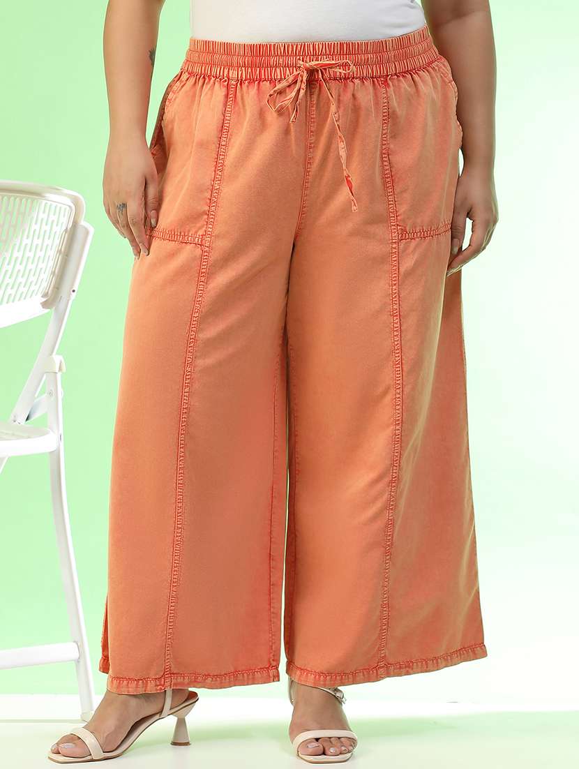 Flare, flair, and freedom, meet the pant that move with you. The Starcore Orange Elasticated With Tie-Up Detail Plus Size Women Long Cotton Pant is designed to flatter curves while keeping you breezy and chic. The vibrant orange hue brings a bold, lively touch to your outfit, while the elasticated waist with adjustable tie-up detail ensures a comfortable, customizable fit for plus-size silhouettes. The long, flared cut adds effortless movement and elegance, making these pants versatile for casual days, brunch outings, or relaxed evening plans. Practical side pockets make them functional without compromising on style, and the soft, breathable cotton fabric ensures all-day comfort. Whether paired with a casual top or a chic blouse, these pants are the perfect blend of comfort, style, and ease for plus-size women who love both functionality and fashion.