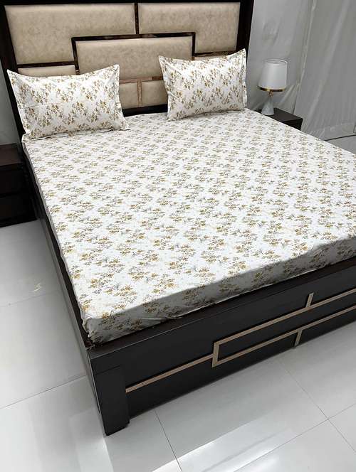printed tc fitted king-sized bedsheet with elastic and 2 pillow covers