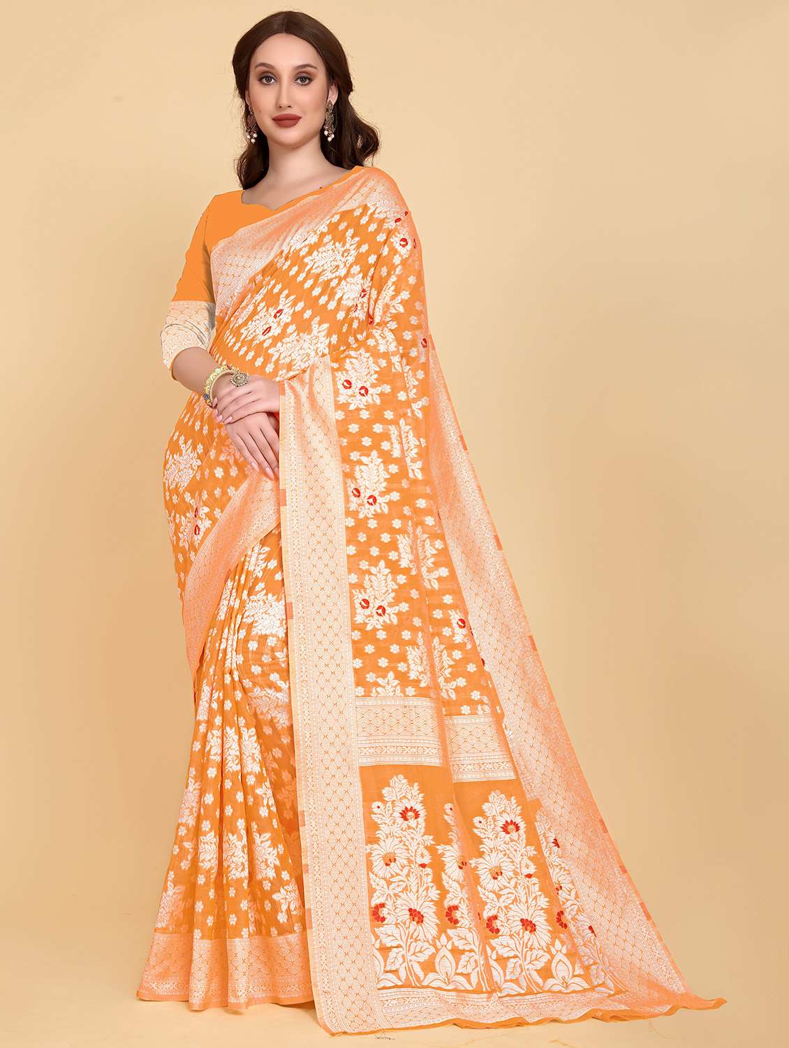 - » orange printed kanjivaram saree