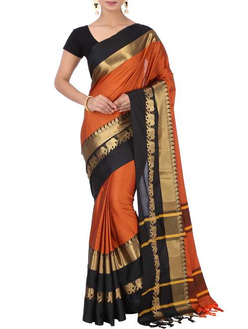 contrast zari border woven saree with blouse