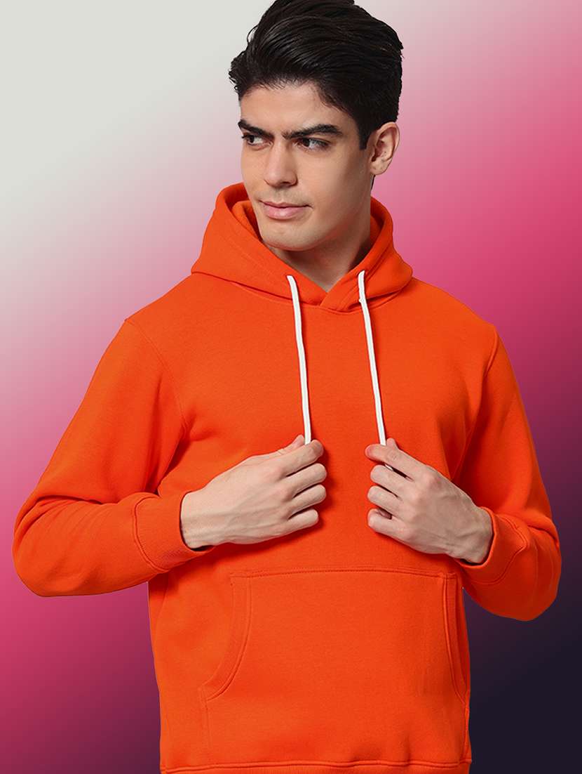 - » men solid long sleeve regular fit hooded sweatshirt