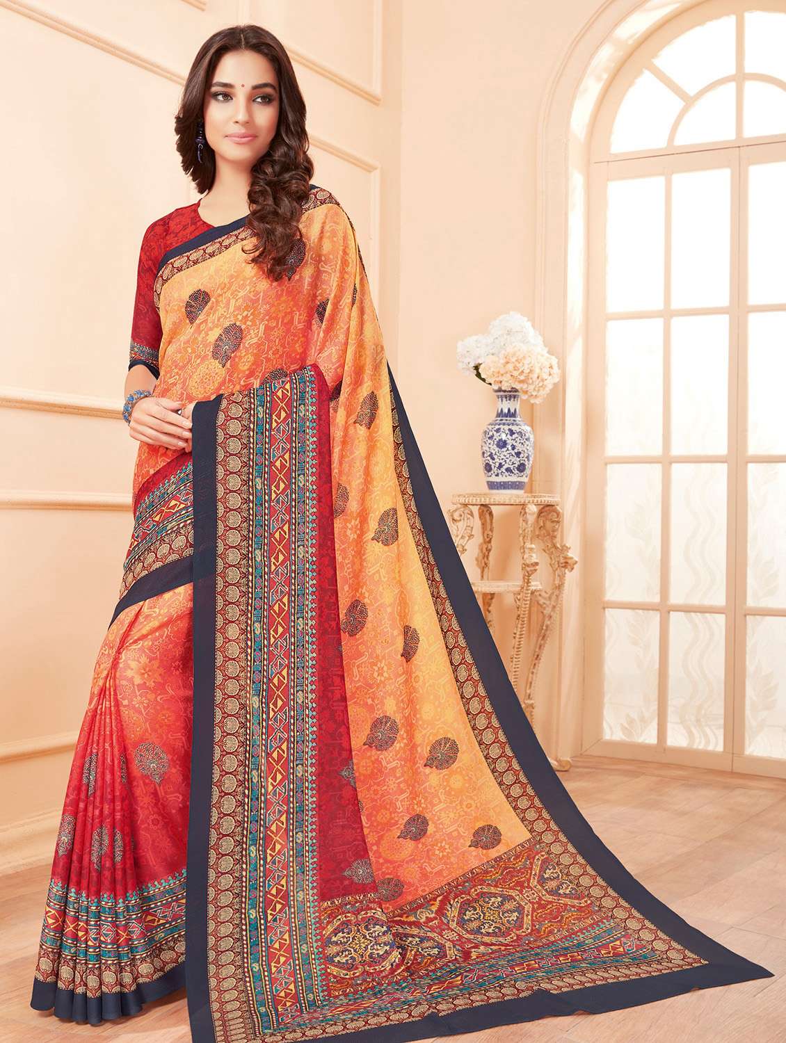 floral printed saree with blouse - 16416111 - Very Small Image - 1