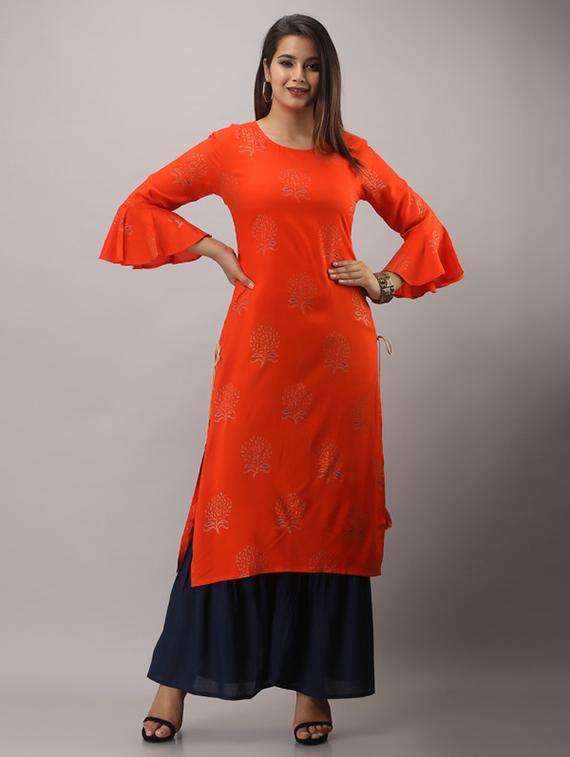 - Find gorgeous sets of ethnic wears in trending designs in orange colors suitable for casual wear of occasions.