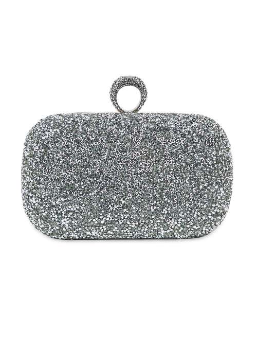 - » Silver Faux Leather Embellished Clutch