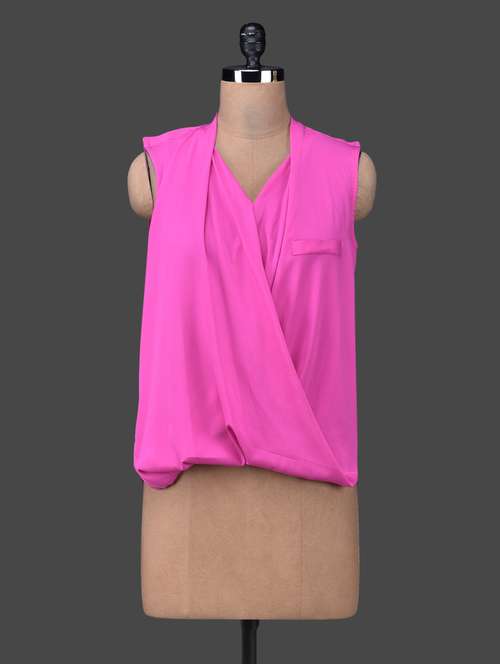 - » overlapping solid pink crepe top