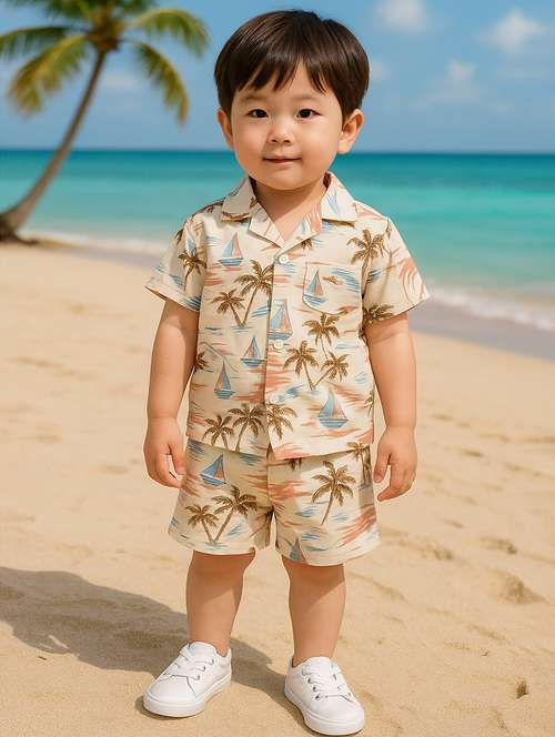 - » boys printed shirt and shorts co-ord set
