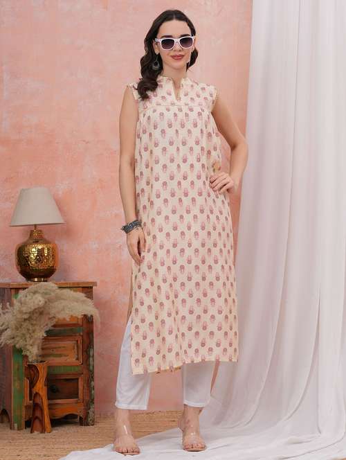 - » women printed sleeveless straight kurta