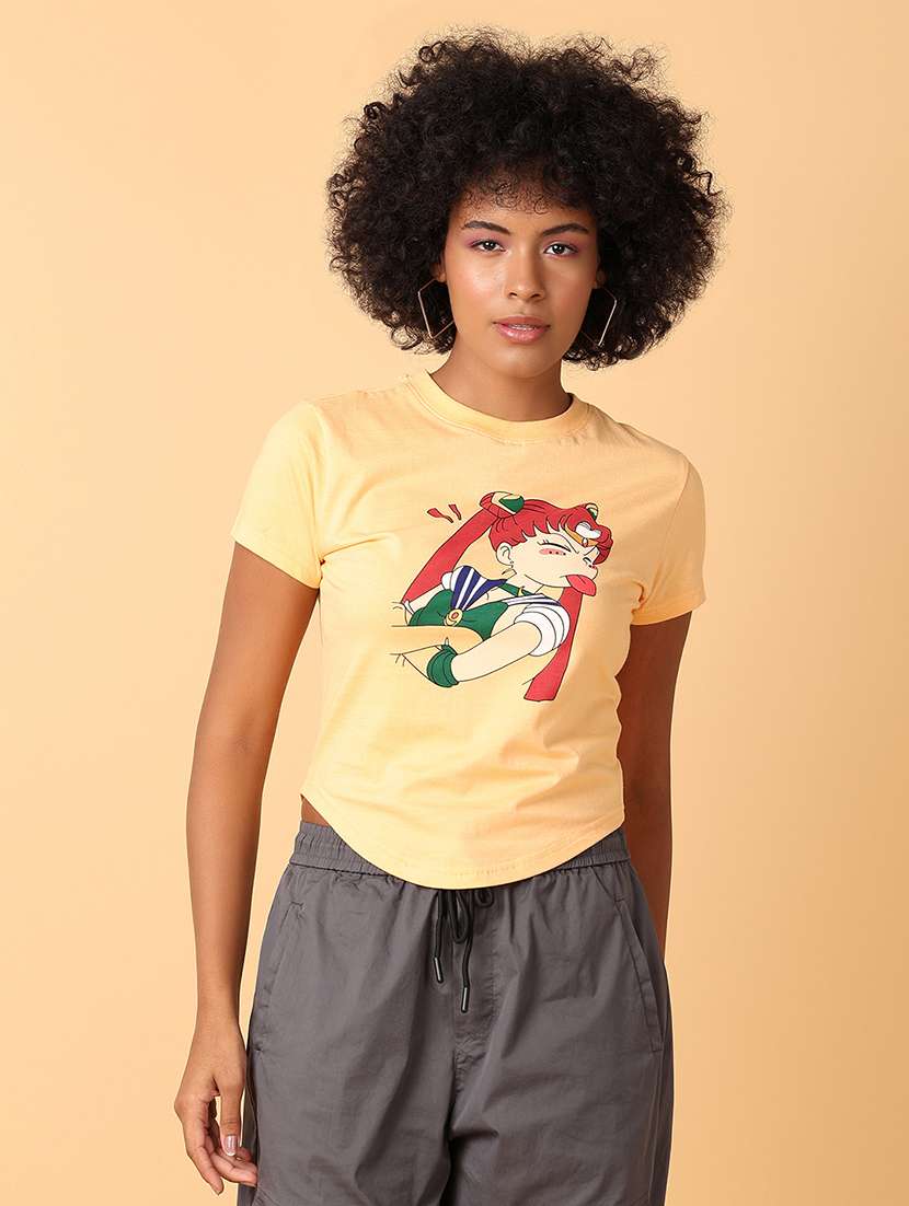 women yellow cotton regular t-shirt