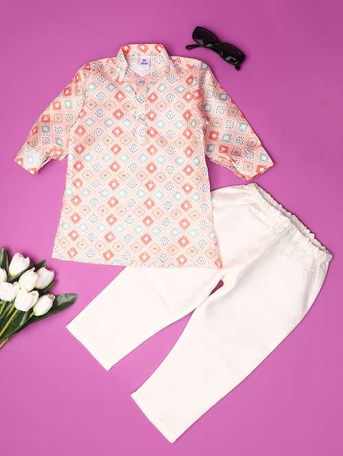 - » kids pink printed detailed kurta & pyjama set