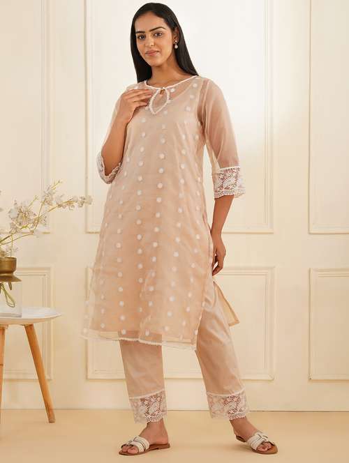 - Find gorgeous sets of ethnic wears in trending designs in beige colors suitable for festive wear of occasions.