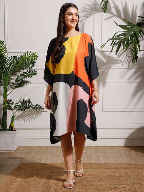 • Revamp your summer style with the latest trendy prints of kaftans available in various silhouettes and hues starting at ₹2120 prices.