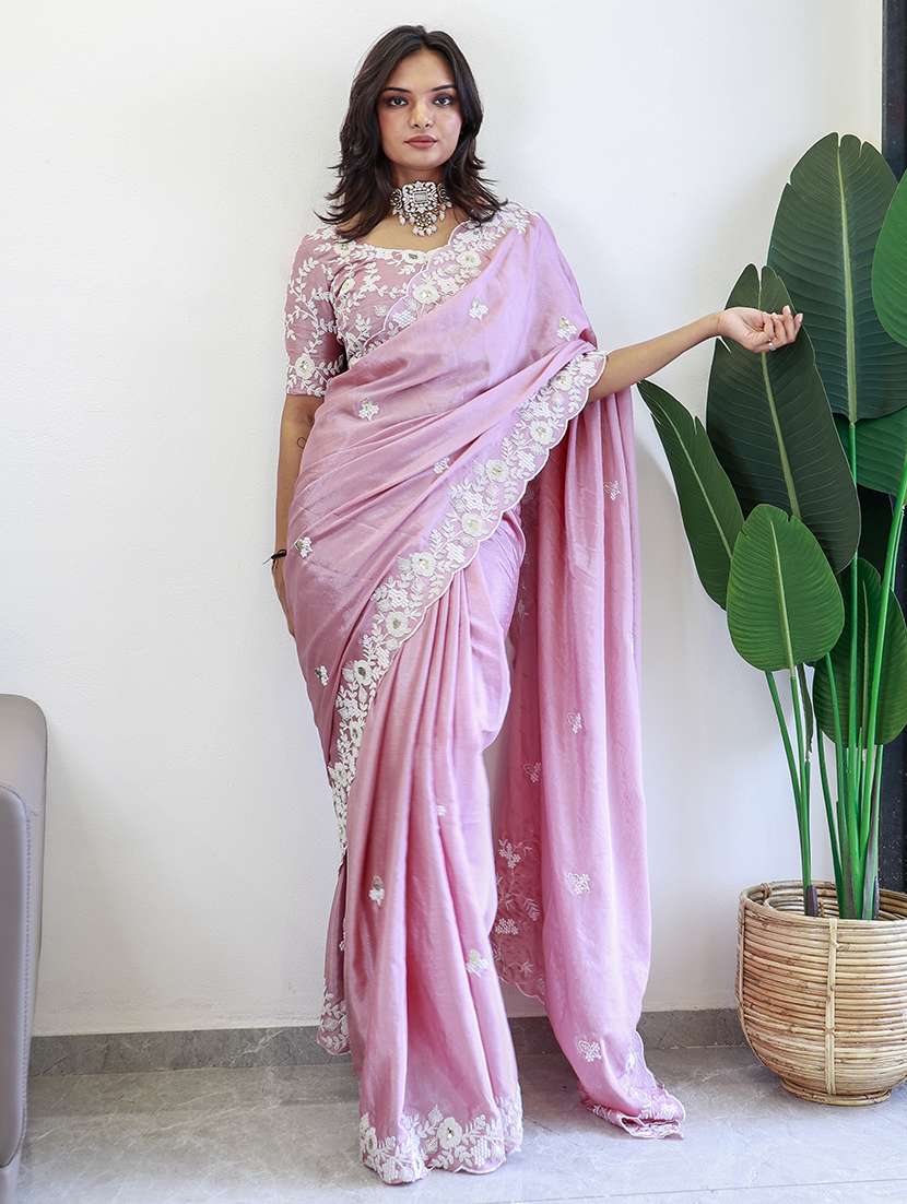 - » women pink embroidered saree with blouse