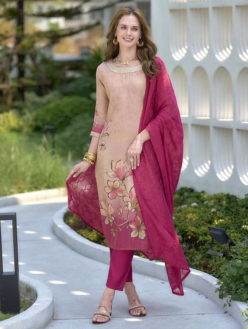 • Find gorgeous sets of ethnic wears in trending designs in peach colors suitable for festive wear of occasions.