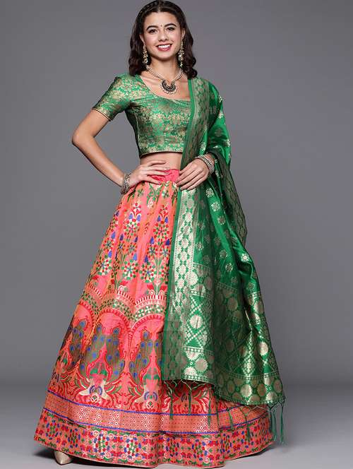 orange art silk flared lehenga - 18067189 - Very Small Image - 1
