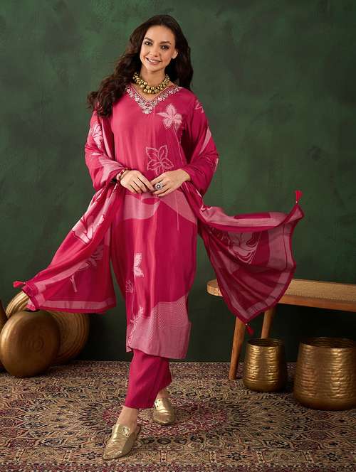 - Find gorgeous sets of ethnic wears in trending designs in pink colors suitable for casual wear of occasions.