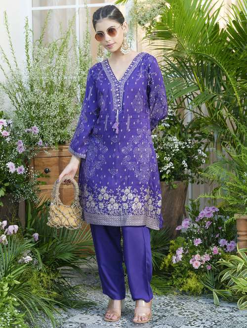 women floral print three quarter sleeve ethnic co-ord set - 22039734 -  Standard Image - 2 women floral print three quarter sleeve ethnic co-ord set - 22039734 -  Zoom Image - 2