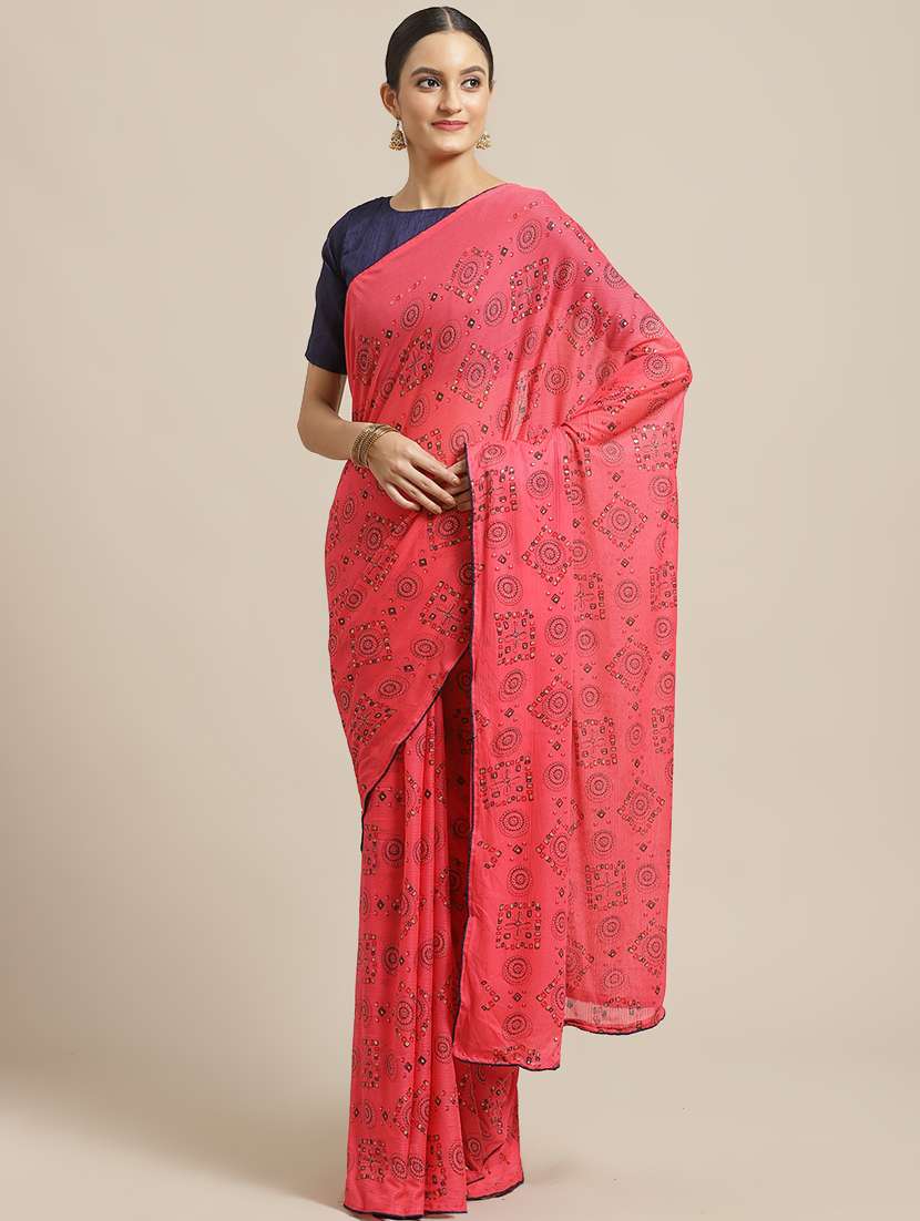 geometrical printed saree with blouse - 17293971 - Very Small Image - 1