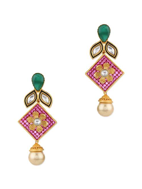 adwitiya collection 24k gold plated pink stones and kundan embellished drop earrings - 10119324 - Very Small Image - 1