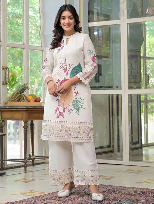 - » women printed three quarter sleeve regular fit ethnic co-ord set