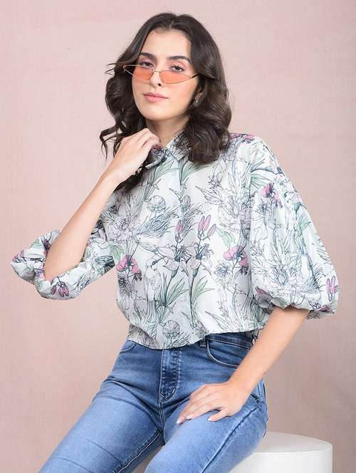 - » women printed puff sleeves crop shirt