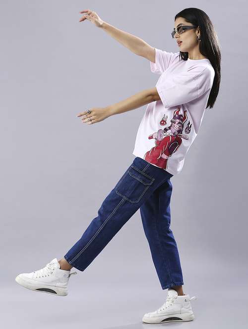 women printed drop shoulder oversized t-shirt
