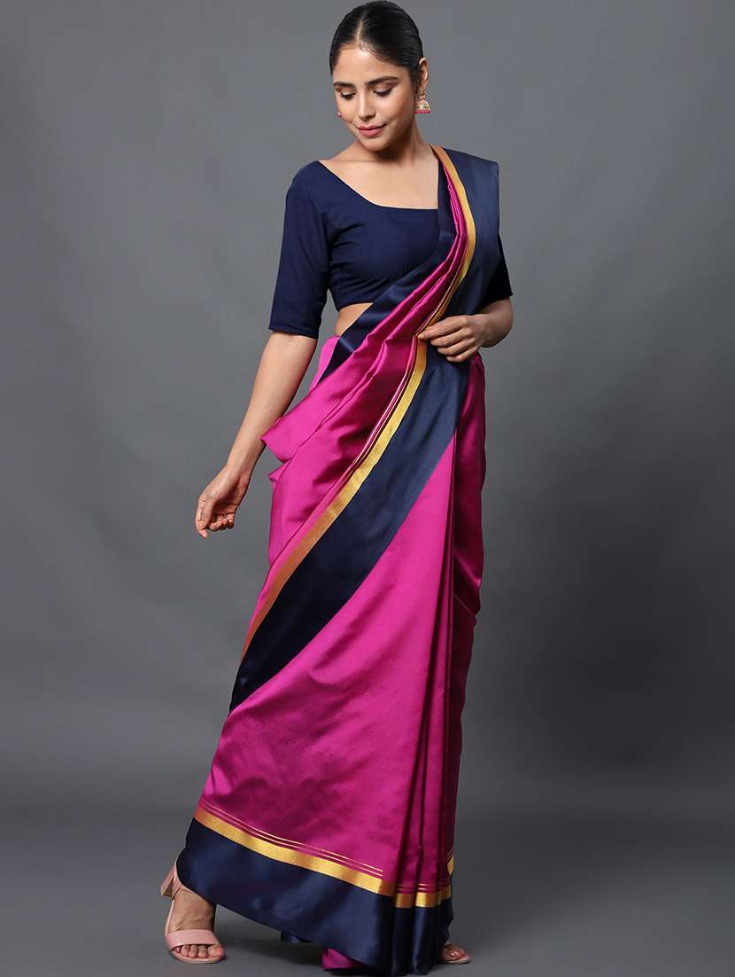solid bordered saree with blouse - 20357791 - Very Small Image - 1