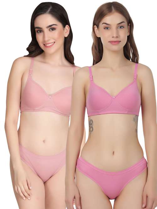 women pack of 2 solid bra and panty set