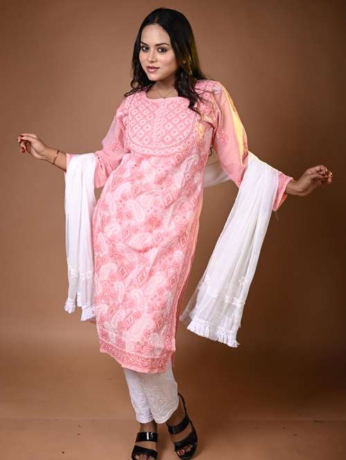 - Find gorgeous sets of ethnic wears in trending designs in pink colors suitable for casual wear of occasions.