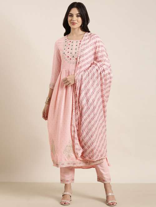 - Browse through the latest range of ethnic sets for women with tailored sleeve designs with sequin works.
