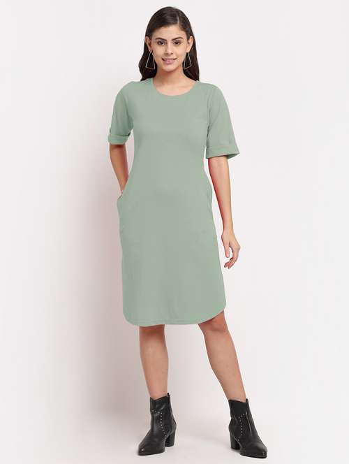 - » women solid short sleeves shift dress