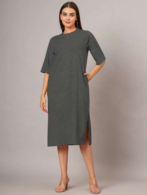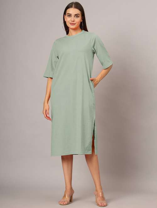 - Dress up in a soothing pattern and don this dress made of cotton material.