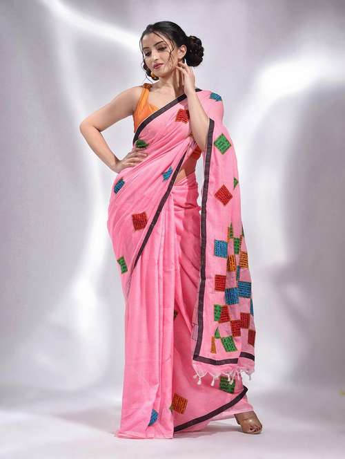Look glamorous and alluring in this red matka silk handwoven saree. It has plain all over with zari and the borders have geometric patterns.