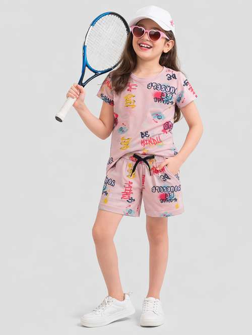 - » girls printed t-shirt & shorts co-ord set