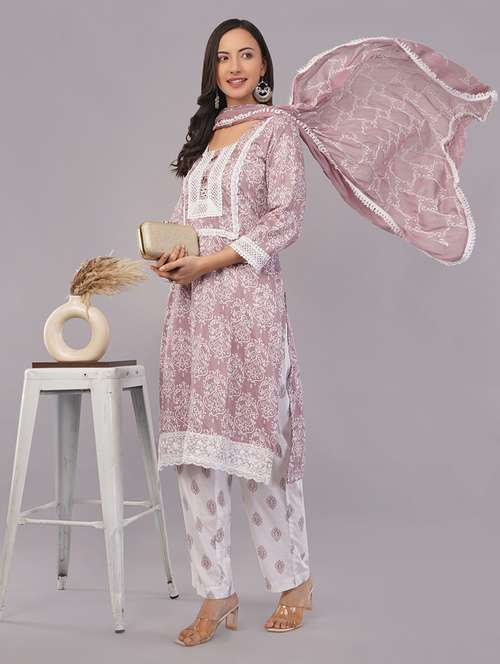 - Find gorgeous sets of ethnic wears in trending designs in mauve colors suitable for casual wear of occasions.