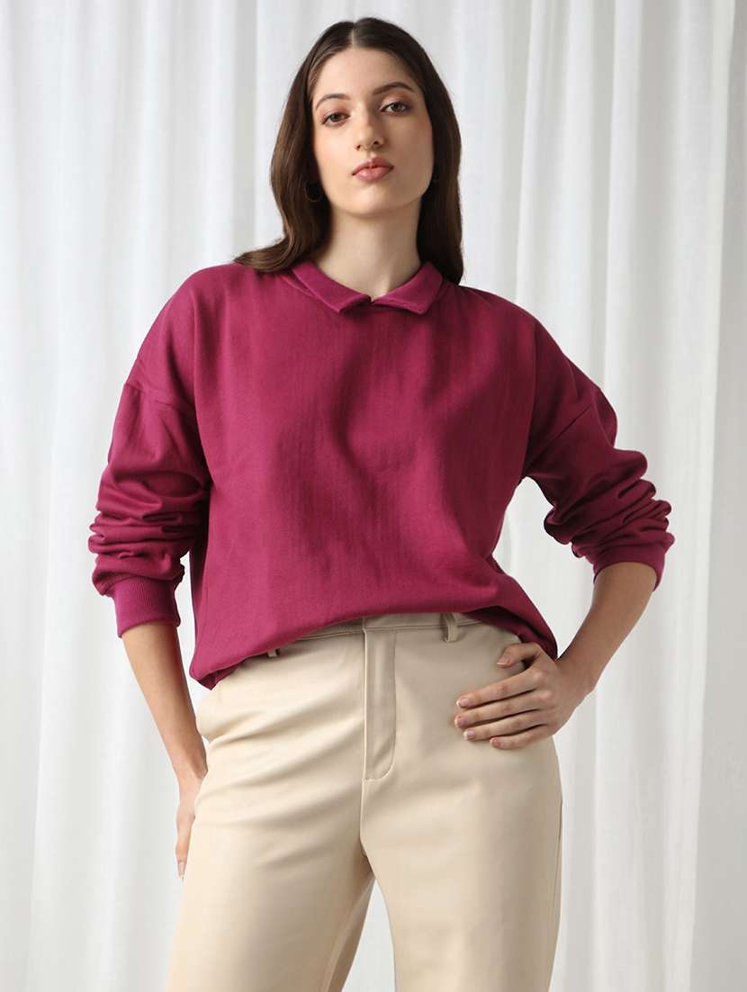 - Recreate your winter style with the all new frisky design options of sweatshirts available in magenta shades and hues to brighten up the chilly days.