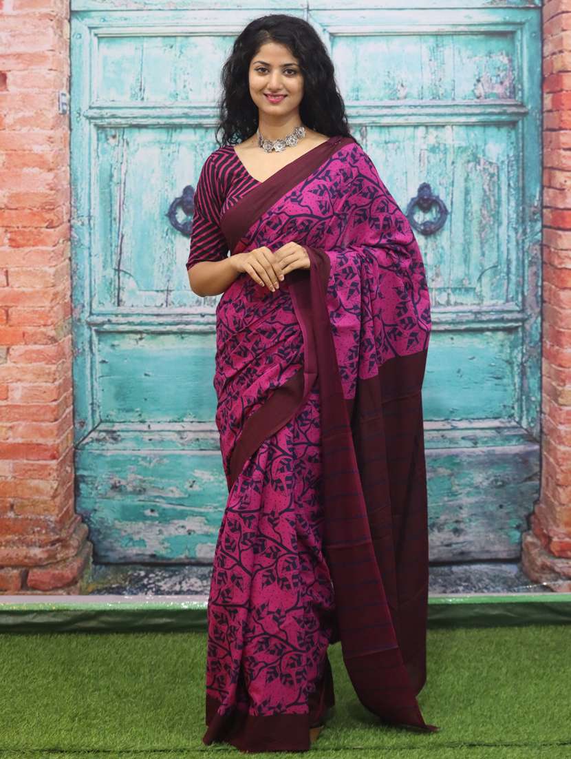 magenta printed saree with blouse - 20314070 - Very Small Image - 1