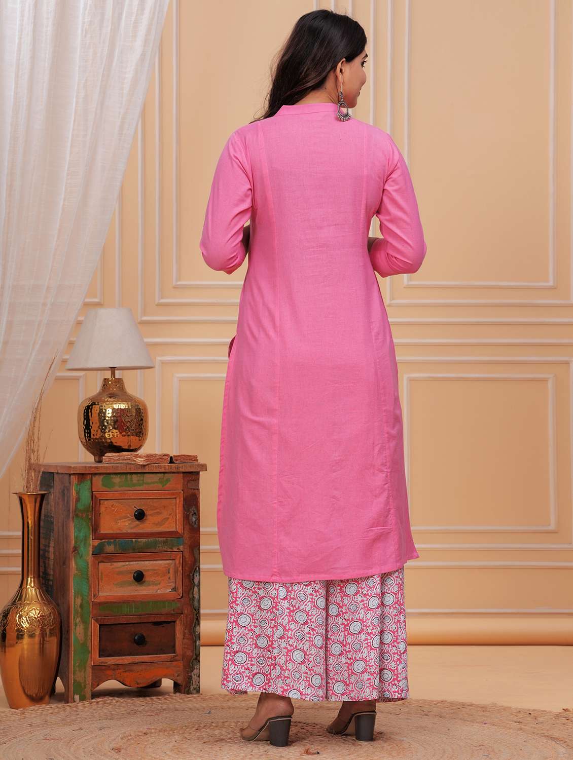 women solid three quarter sleeve a-line kurta