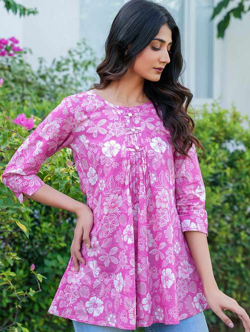 - » women floral print three quarter sleeve a-line kurti