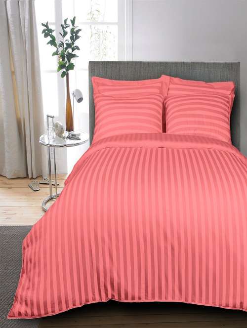 self striped satin cotton plain king bedsheet with 2 pillow covers