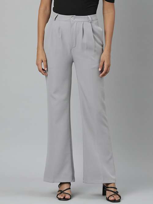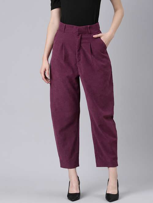 SHOWOFF Women's Pleated Straight Fit Peach Solid Regular Trousers