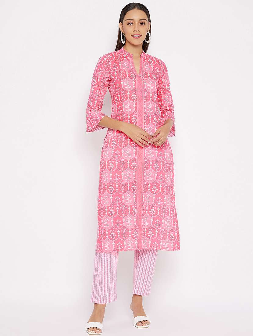 - Find gorgeous sets of ethnic wears in trending designs in pink colors suitable for casual wear of occasions.