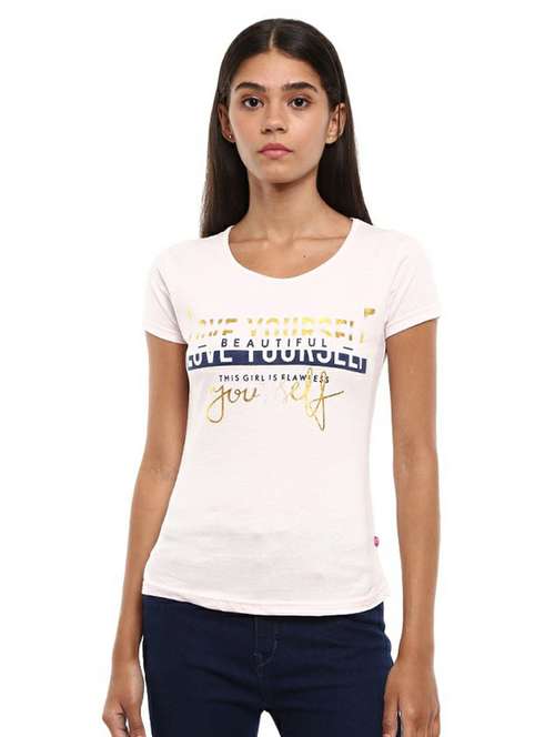 - » women's chest print round neck t-shirt