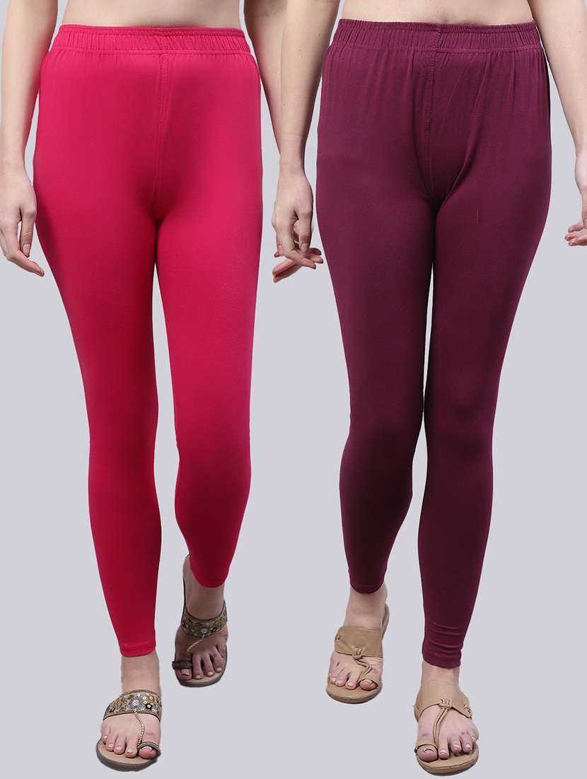 Upgrade your collection of warm-weather staples with these Solid Dark Pink and Purple Leggings combo by Valles365. Pair them with a flowy tee and lace-up sandals for a super chic look.