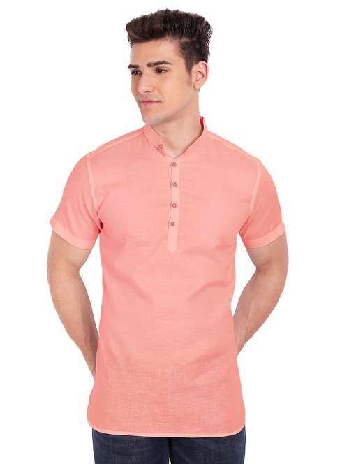 peach solid short kurta